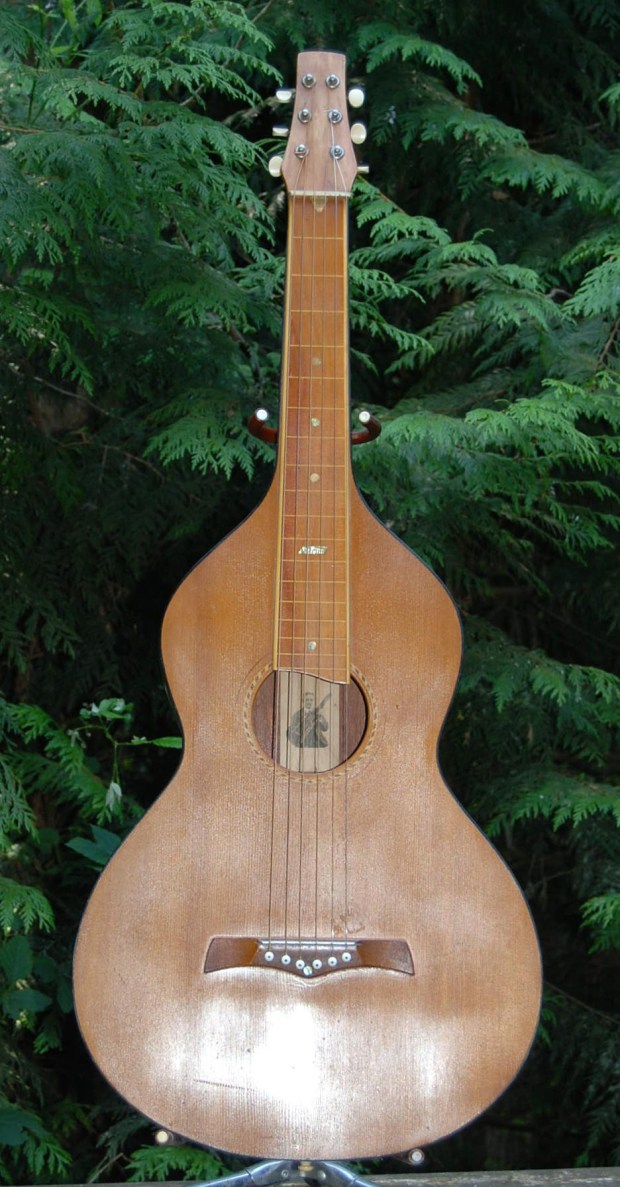 TN: By 1920 Hermann had already built examples of the four models that would become Styles 1-4. I think he received sage marketing advice from De Lano, various department stores and music stores he sold through, and from Harry Stadlmair (Henry Stadlmair’s son) who became the west coast manager for distributors Bruno & Sons. Different levels of ornamentation would satisfiy different tastes and different pocket books. The 1925 Stadlmair catalog listed the four styles: Style 1, no binding, simple position dots–$40; Style 2, black binding, “fancy selected position marks.”–$56; Style3, rope binding around the top and fingerboard edges, “extra fancy position marks”–$67.50; and Style 4; rope binding around top and back, headstock and fingerboard edges, “extra fancy position marks.”–$79.