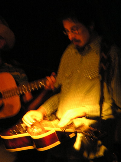 DH: I play acoustic and electric guitar, dobro and pedal steel, although I’ve hardly played steel at all since I left New York in 2000. I can also play just enough mandolin to squeak by in the studio, but that doesn’t count. I guess I consider myself a guitar player; I remember a Mike Auldridge interview in which they asked, “why do you keep calling them [meaning his Guersneys and Beards] guitars?” To which he replied, “Because it is a guitar, it’s a steel guitar.” and I suppose I think of it the same way – it’s a kind of guitar, so I’m basically a guitar player. But I do feel like I can express myself the most directly and emotionally when I’m playing some kind of slide instrument, whether it’s bottleneck guitar, lap-style resophonic guitar, pedal steel, or whatever.